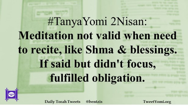 #TanyaYomi 2Nisan: Meditation not valid when need to recite, like Shma & blessings. If said but didn’t focus, fulfilled obligation.
