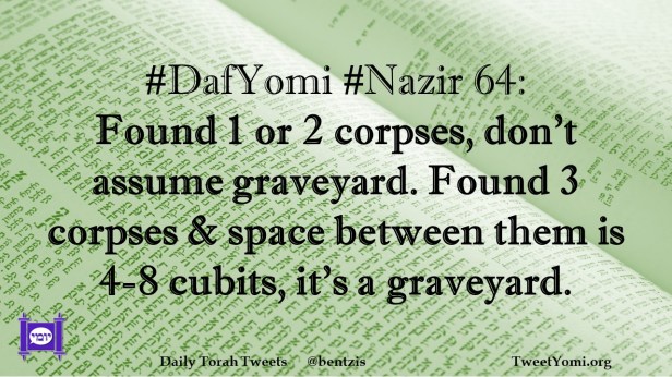 DafYomi, Nazir #DafYomi #Nazir 64 Date: March 30, 2023Author: netanelspitz #DafYomi #Nazir 64: Found 1 or 2 corpses, don’t assume graveyard. Found 3 corpses & space between them is 4-8 cubits, it’s a graveyard. Share this: Share on X (Opens in new window) X Share on Facebook (Opens in new window) Facebook Like Loading... Related