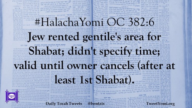 #HalachaYomi OC 382:6 Jew rented gentile’s area for Shabat; didn’t specify time; valid until owner cancels (after at least 1st Shabat).