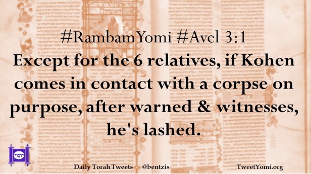 #RambamYomi #Avel 3:1 Except for the 6 relatives, if Kohen comes in contact with a corpse on purpose, after warned & witnesses, he’s lashed.