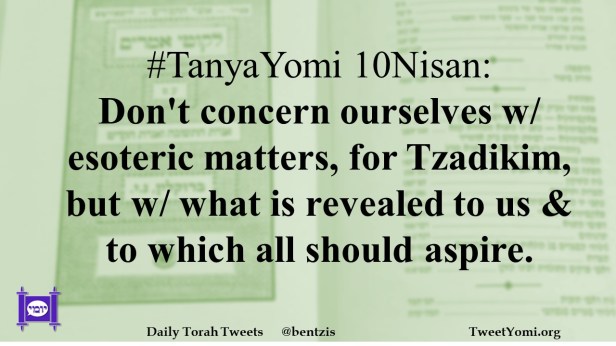 #TanyaYomi 10Nisan: Don’t concern ourselves w/ esoteric matters, for Tzadikim, but w/ what is revealed to us & to which all should aspire.