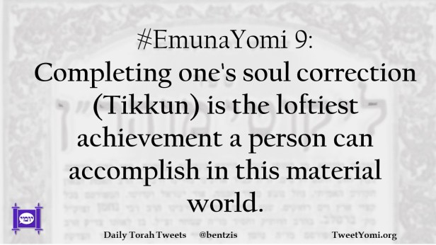 #EmunaYomi 9: Completing one’s soul correction (Tikkun) is the loftiest achievement a person can accomplish in this material world.