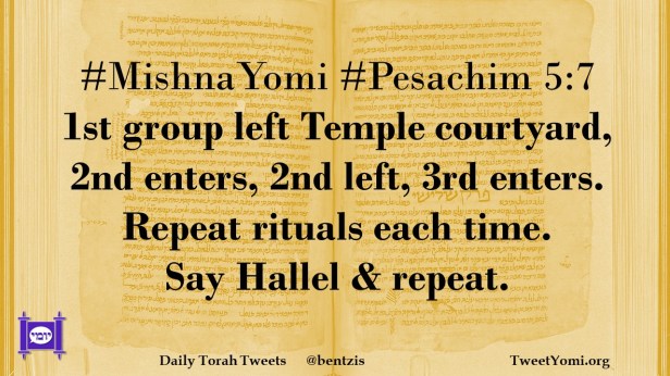 #MishnaYomi #Pesachim 5:7 1st group left Temple courtyard, 2nd enters, 2nd left, 3rd enters. Repeat rituals each time. Say Hallel & repeat.