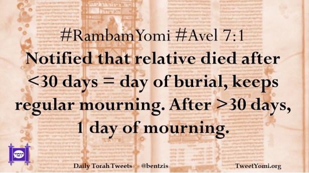 #RambamYomi #Avel 7:1 Notified that relative died after <30 days = day of burial, keeps regular mourning. After >30 days, 1 day of mourning.