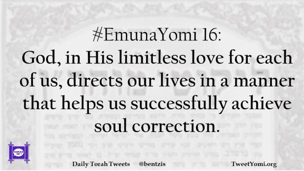 #EmunaYomi 16: God, in His limitless love for each of us, directs our lives in a manner that helps us successfully achieve soul correction.