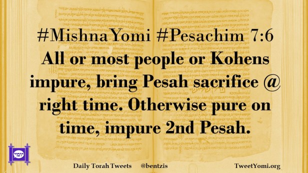 #MishnaYomi #Pesachim 7:6 All or most people or Kohens impure, bring Pesah sacrifice @ right time. Otherwise pure on time, impure 2nd Pesah.