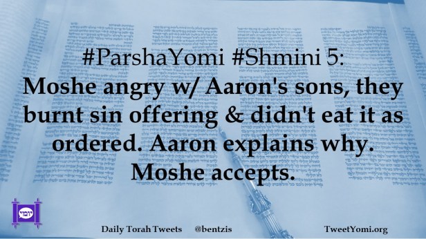 #ParshaYomi #Shmini 5: Moshe angry w/ Aaron’s sons, they burnt sin offering & didn’t eat it as ordered. Aaron explains why. Moshe accepts.