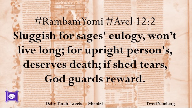 #RambamYomi #Avel 12:2 Sluggish for sages’ eulogy, won’t live long; for upright person’s, deserves death; if shed tears, God guards reward.