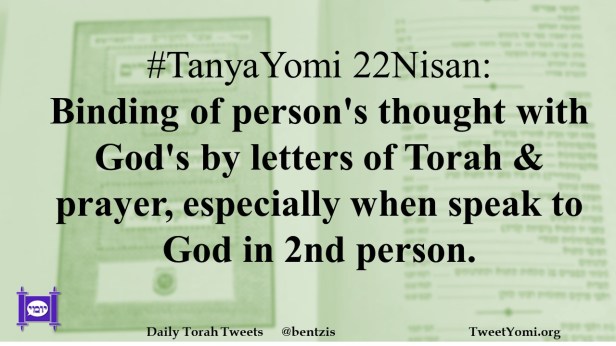 #TanyaYomi 22Nisan: Binding of person’s thought with God’s by letters of Torah & prayer, especially when speak to God in 2nd person.