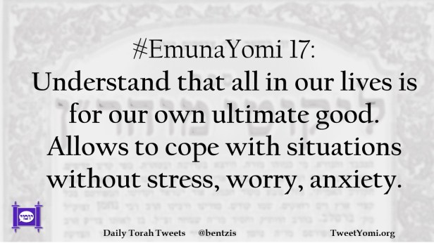 #EmunaYomi 17: Understand that all in our lives is for our own ultimate good. Allows to cope with situations without stress, worry, anxiety.