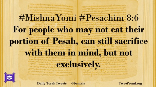 #MishnaYomi #Pesachim 8:6 For people who may not eat their portion of Pesah, can still sacrifice with them in mind, but not exclusively.