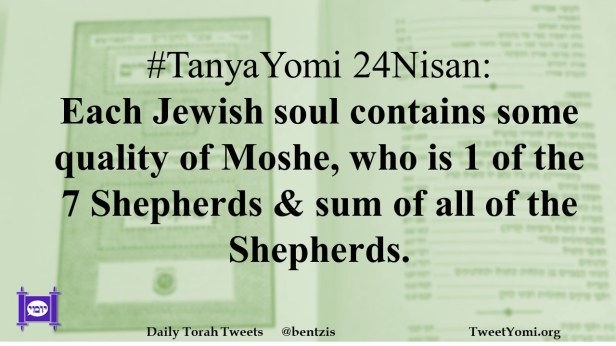 #TanyaYomi 24Nisan: Each Jewish soul contains some quality of Moshe, who is 1 of the 7 Shepherds & sum of all of the Shepherds.