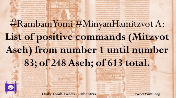 #RambamYomi #MinyanHamitzvot A: List of positive commands (Mitzvot Aseh) from number 1 until number 83; of 248 Aseh; of 613 total.