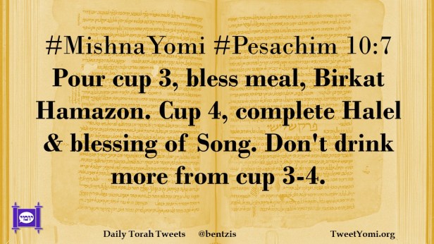 #MishnaYomi #Pesachim 10:7 Pour cup 3, bless meal, Birkat Hamazon. Cup 4, complete Halel & blessing of Song. Don’t drink more from cup 3-4.