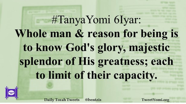 #TanyaYomi 6Iyar: Whole man & reason for being is to know God’s glory, majestic splendor of His greatness; each to limit of their capacity.