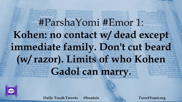 #ParshaYomi #Emor 1: Kohen: no contact w/ dead except immediate family. Don’t cut beard (w/ razor). Limits of who Kohen Gadol can marry.