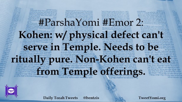 #ParshaYomi #Emor 2: Kohen: w/ physical defect can’t serve in Temple. Needs to be ritually pure. Non-Kohen can’t eat from Temple offerings.
