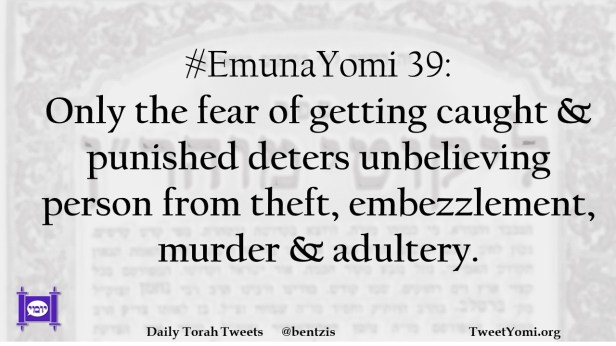 #EmunaYomi 39: Only the fear of getting caught & punished deters unbelieving person from theft, embezzlement, murder & adultery.