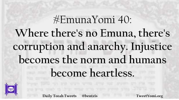 #EmunaYomi 40: Where there’s no Emuna, there’s corruption and anarchy. Injustice becomes the norm and humans become heartless.