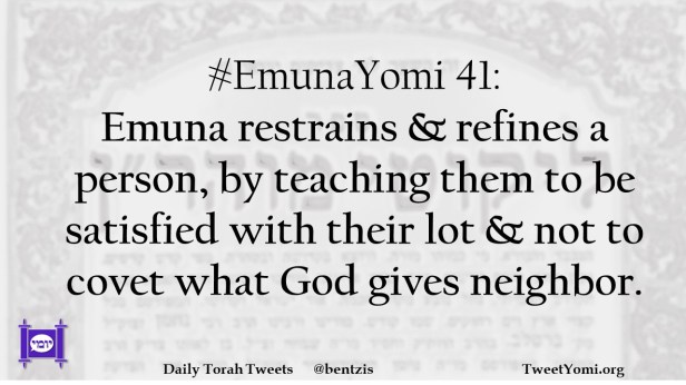 #EmunaYomi 41: Emuna restrains & refines a person, by teaching them to be satisfied with their lot & not to covet what God gives neighbor.