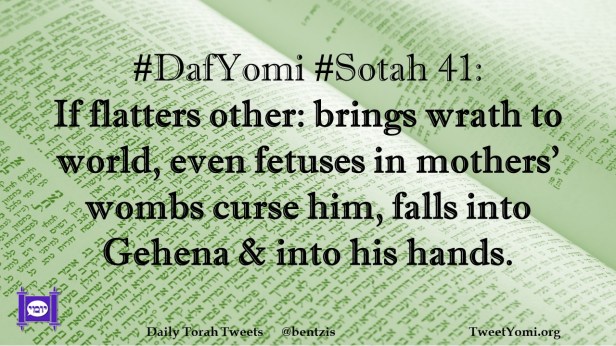 DafYomi, Sotah #DafYomi #Sotah 41 Date: May 9, 2023Author: netanelspitz #DafYomi #Sotah 41: If flatters other: brings wrath to world, even fetuses in mothers’ wombs curse him, falls into Gehena & into his hands. Share this: Share on X (Opens in new window) X Share on Facebook (Opens in new window) Facebook Like Loading... Related