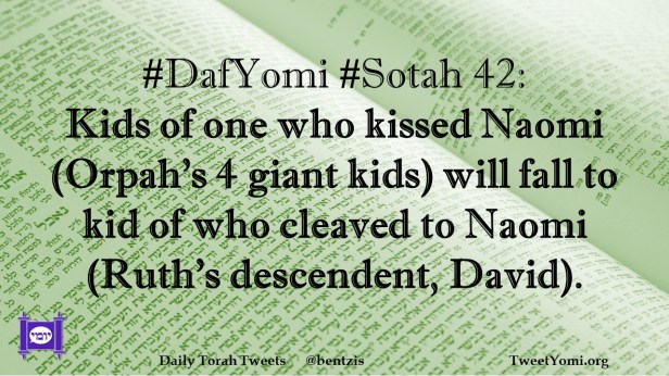 DafYomi, Sotah #DafYomi #Sotah 42 Date: May 11, 2023Author: netanelspitz #DafYomi #Sotah 42: Kids of one who kissed Naomi (Orpah’s 4 giant kids) will fall to kid of who cleaved to Naomi (Ruth’s descendent, David). Share this: Share on X (Opens in new window) X Share on Facebook (Opens in new window) Facebook Like Loading... Related