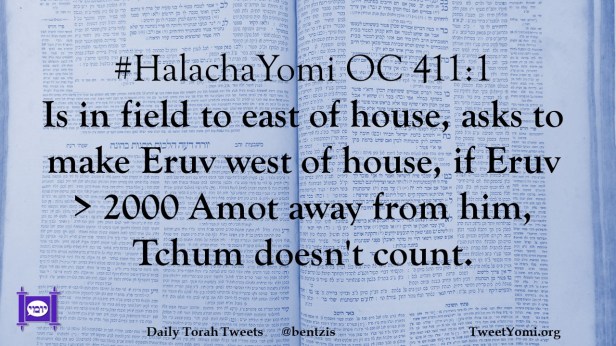 #HalachaYomi OC 411:1 Is in field to east of house, asks to make Eruv west of house, if Eruv > 2000 Amot away from him, Tchum doesn’t count.