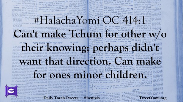 #HalachaYomi OC 414:1 Can’t make Tchum for other w/o their knowing; perhaps didn’t want that direction. Can make for ones minor children.