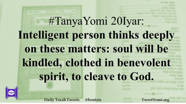 #TanyaYomi 20Iyar: Intelligent person thinks deeply on these matters: soul will be kindled, clothed in benevolent spirit, to cleave to God.