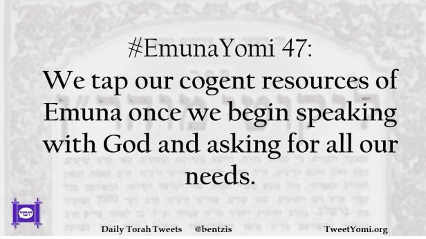 EmunaYomi #EmunaYomi 47 Date: May 15, 2023Author: netanelspitz #EmunaYomi 47: We tap our cogent resources of Emuna once we begin speaking with God and asking for all our needs. Share this: Share on X (Opens in new window) X Share on Facebook (Opens in new window) Facebook Like Loading... Related