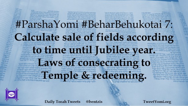 #ParshaYomi #BeharBehukotai 7: Calculate sale of fields according to time until Jubilee year. Laws of consecrating to Temple & redeeming.