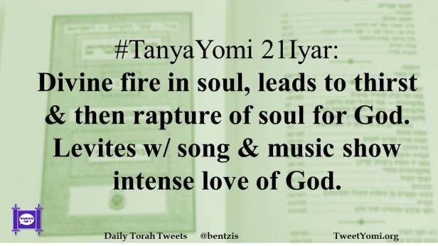 #TanyaYomi 21Iyar: Divine fire in soul, leads to thirst & then rapture of soul for God. Levites w/ song & music show intense love of God.