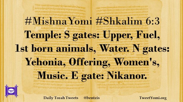 #MishnaYomi #Shkalim 6:3 Temple: S gates: Upper, Fuel, 1st born animals, Water. N gates: Yehonia, Offering, Women’s, Music. E gate: Nikanor.
