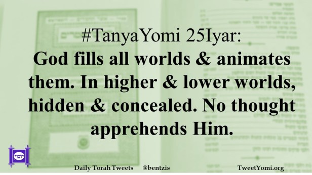 #TanyaYomi 25Iyar: God fills all worlds & animates them. In higher & lower worlds, hidden & concealed. No thought apprehends Him.