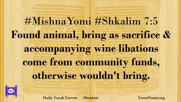 #MishnaYomi #Shkalim 7:5 Found animal, bring as sacrifice & accompanying wine libations come from community funds, otherwise wouldn’t bring.