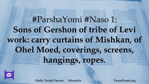#ParshaYomi #Naso 1: Sons of Gershon of tribe of Levi work: carry curtains of Mishkan, of Ohel Moed, coverings, screens, hangings, ropes.
