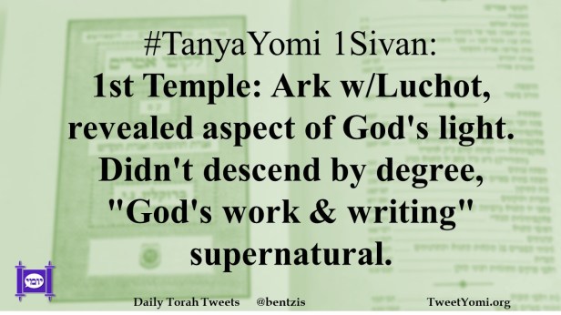 #TanyaYomi 1Sivan: 1st Temple: Ark w/Luchot, revealed aspect of God’s light. Didn’t descend by degree, “God’s work & writing” supernatural.