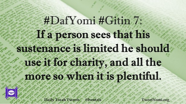 DafYomi, Gitin #DafYomi #Gitin 7 Date: May 25, 2023Author: netanelspitz #DafYomi #Gitin 7: If a person sees that his sustenance is limited he should use it for charity, and all the more so when it is plentiful. Share this: Share on X (Opens in new window) X Share on Facebook (Opens in new window) Facebook Like Loading... Related