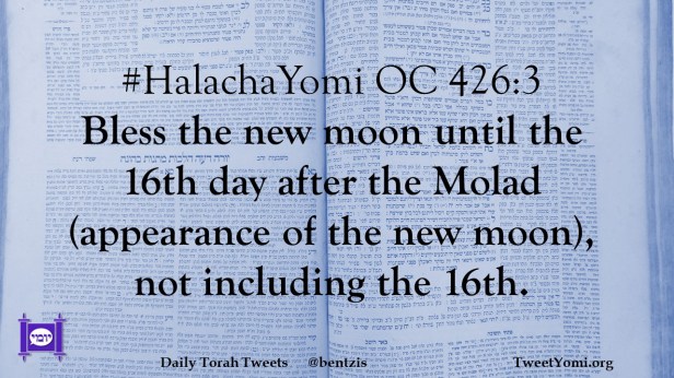 #HalachaYomi OC 426:3 Bless the new moon until the 16th day after the Molad (appearance of the new moon), not including the 16th.