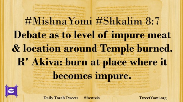 #MishnaYomi #Shkalim 8:7 Debate as to level of impure meat & location around Temple burned. R’ Akiva: burn at place where it becomes impure.