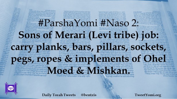 #ParshaYomi #Naso 2: Sons of Merari (Levi tribe) job: carry planks, bars, pillars, sockets, pegs, ropes & implements of Ohel Moed & Mishkan.