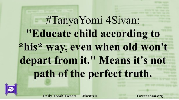 #TanyaYomi 4Sivan: “Educate child according to *his* way, even when old won’t depart from it.” Means it’s not path of the perfect truth.