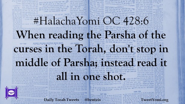 #HalachaYomi OC 428:6 When reading the Parsha of the curses in the Torah, don’t stop in middle of Parsha; instead read it all in one shot.