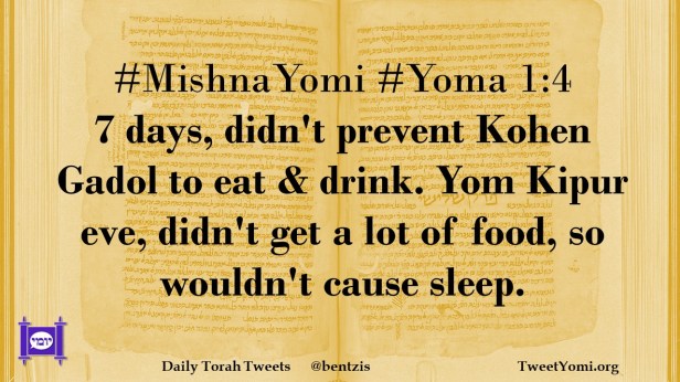 #MishnaYomi #Yoma 1:4 7 days, didn’t prevent Kohen Gadol to eat & drink. Yom Kipur eve, didn’t get a lot of food, so wouldn’t cause sleep.