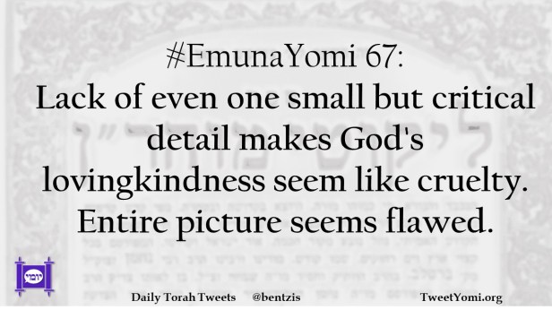 #EmunaYomi 67: Lack of even one small but critical detail makes God’s lovingkindness seem like cruelty. Entire picture seems flawed.