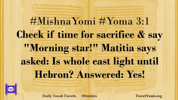 #MishnaYomi #Yoma 3:1 Check if time for sacrifice & say “Morning star!” Matitia says asked: Is whole east light until Hebron? Answered: Yes!
