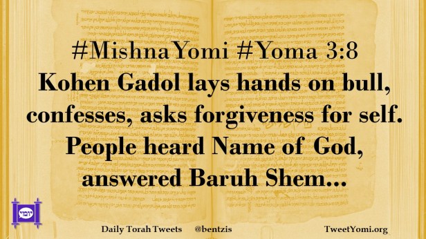 #MishnaYomi #Yoma 3:8 Kohen Gadol lays hands on bull, confesses, asks forgiveness for self. People heard Name of God, answered Baruh Shem…