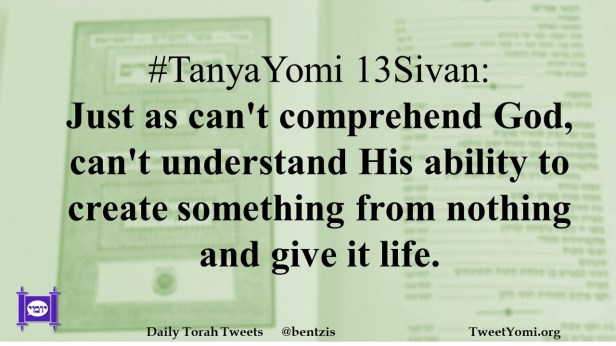 #TanyaYomi 13Sivan: Just as can’t comprehend God, can’t understand His ability to create something from nothing and give it life.