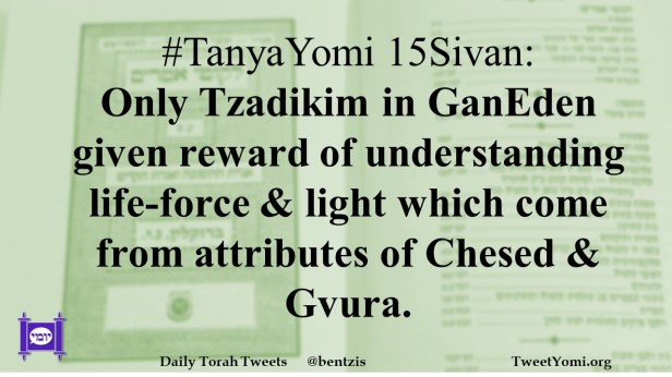 #TanyaYomi 15Sivan: Only Tzadikim in GanEden given reward of understanding life-force & light which come from attributes of Chesed & Gvura.