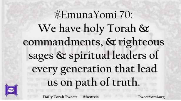 #EmunaYomi 70: We have holy Torah & commandments, & righteous sages & spiritual leaders of every generation that lead us on path of truth.